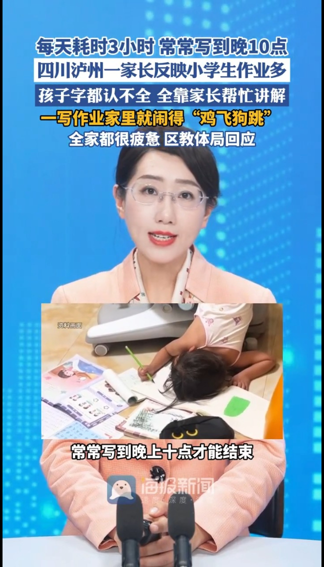 主播说丨每天耗时3小时 常常写到晚10点,四川泸州一家长反映小学生作业多