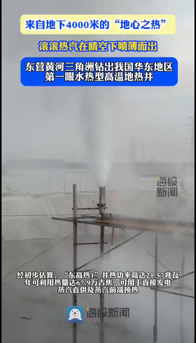 来自地下4000米的“地心之热” 东营黄河三角洲钻出我国华东地区第一眼水热型高温地热井