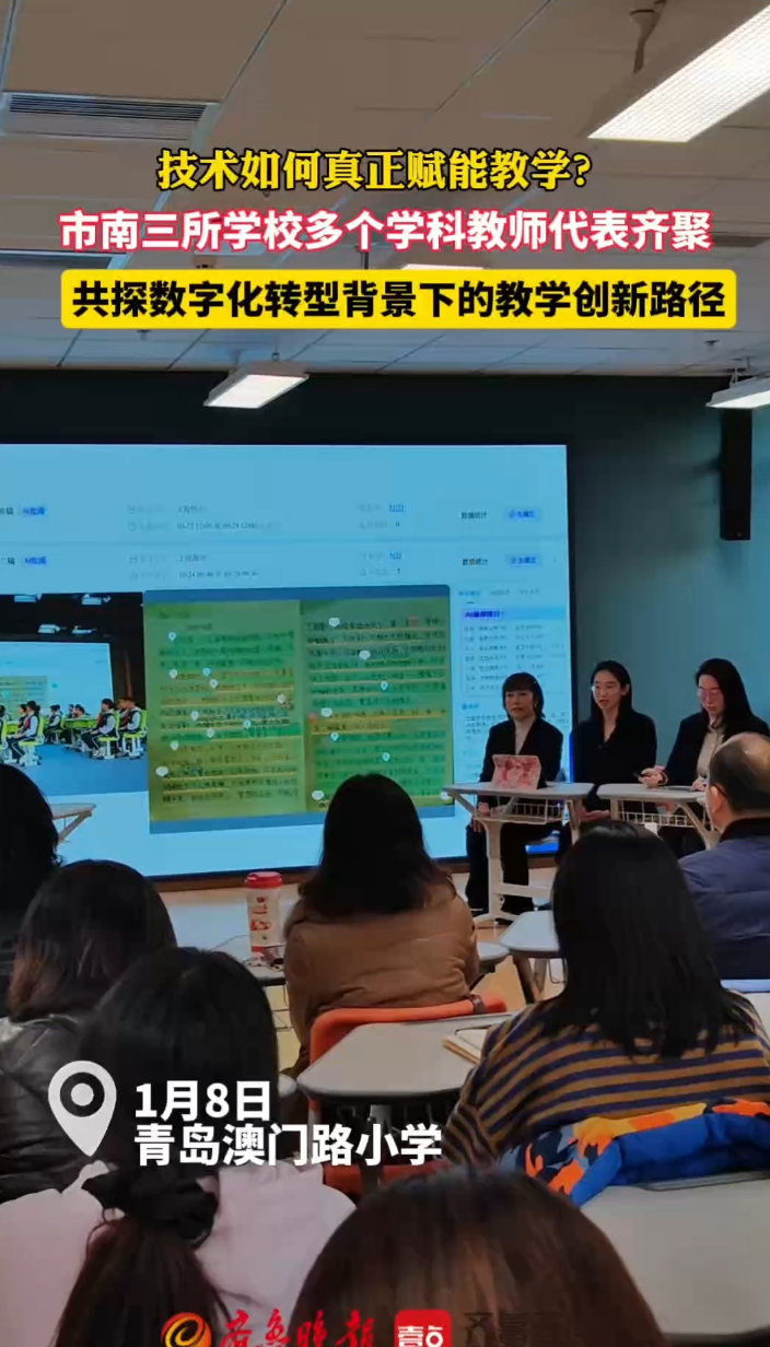 果然视频丨市南三校齐聚,共探数字化转型背景下的教学新路径齐鲁晚报·齐鲁壹点客户端 01-09原创1月8日下午,青岛嘉峪关学校、青岛宁夏路小学、青岛澳门路小学教育集团教学节活动在澳门路小学举行。三校领导、教师代表及教育专家,共同探讨数字化转型背景下的教学新路径。 (齐鲁晚报·齐鲁壹点 李珍梅)