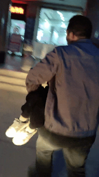 背着一名浑身抽搐的男孩