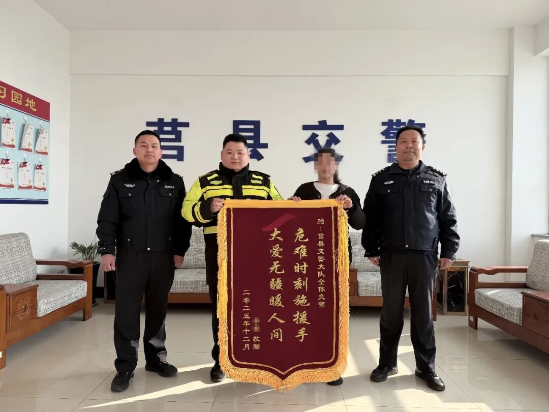 将一面锦旗送到了交警手中
