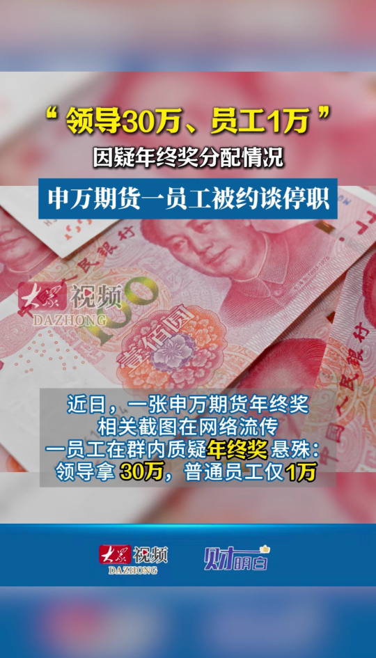 财明白|“领导30万、员工1万”质疑年终奖分配,申万期货一员工被约谈停职