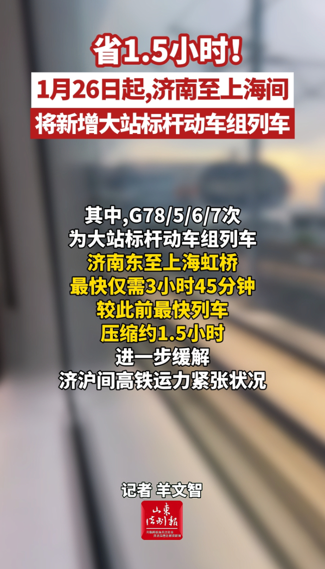 省1.5小时!1月26日起,济南至上海间将新增少停站直达动车