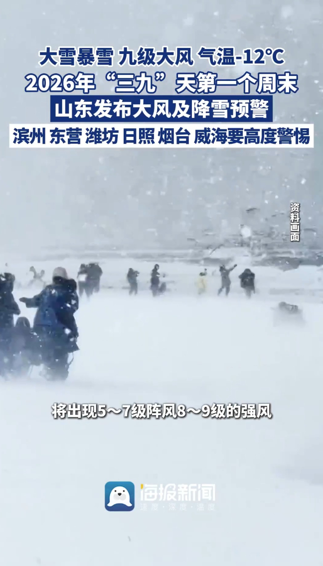 主播说丨大雪暴雪+九级大风+气温-12℃ 2026年“三九”天第一个周末,山东发布大风及降雪预警