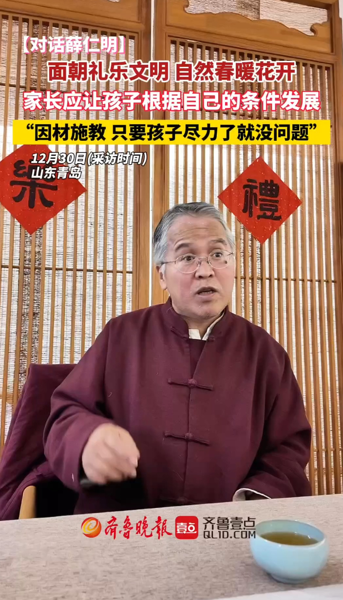 果然视频|对话薛仁明:面朝礼乐文明,自然春暖花开齐鲁晚报·齐鲁壹点客户端 01-09原创谈及“兴趣班内卷”,中国台湾学者薛仁明有自己的看法:“孩子有客观条件变得优秀,就让他优秀;没办法变得那么优秀,只要孩子尽力了,也没问题。”薛仁明特别强调,对孩子要因材施教。“面朝礼乐文明,自然春暖花开”。 (齐鲁晚报·齐鲁壹点 高雅洁)