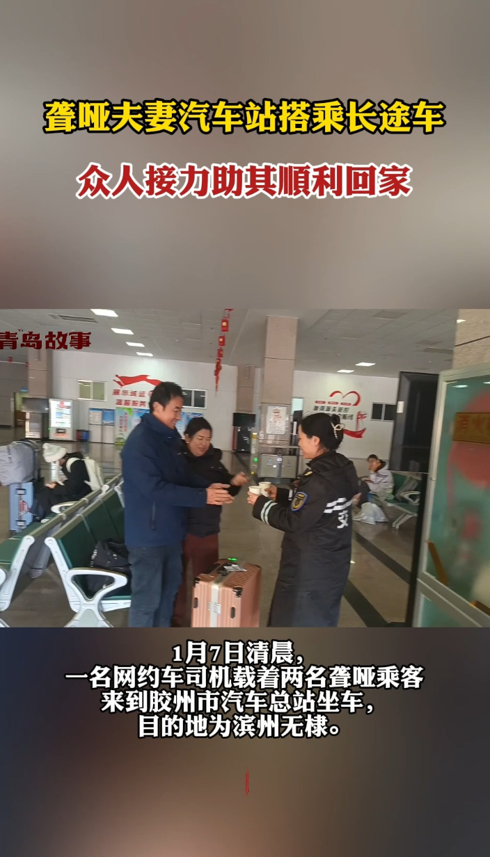 果然视频|聋哑夫妻要搭长途车,众人接力助其顺利回家齐鲁晚报·齐鲁壹点客户端 01-09原创1月7日清晨,一名网约车司机载着两名聋哑乘客来到胶州市汽车总站坐车,目的地为滨州无棣。多名站务员通过文字书写的方式与乘客沟通,之后专程与大巴车司机交代了特殊乘客的事项。在众人接力下,聋哑夫妇顺利回家。 (齐鲁晚报•齐鲁壹点 刘震 通讯员 高琪 侯桂荣)
