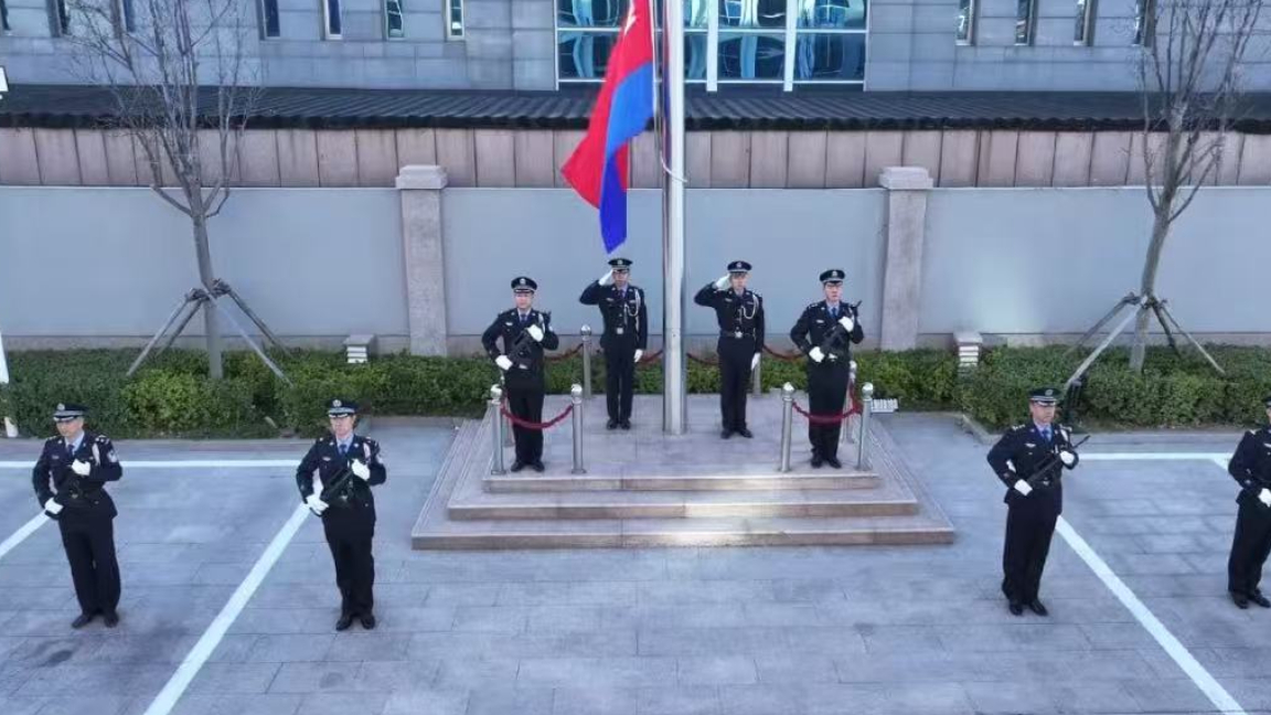 青岛市公安局李沧分局举行庆祝第六个中国人民警察节升警旗仪式