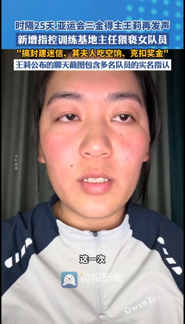 时隔25天,曾为国争光的亚运会三金运动员王莉,再度站出来了!这一次,她带着更沉重、更惊人的指控,直面联合调查组。
