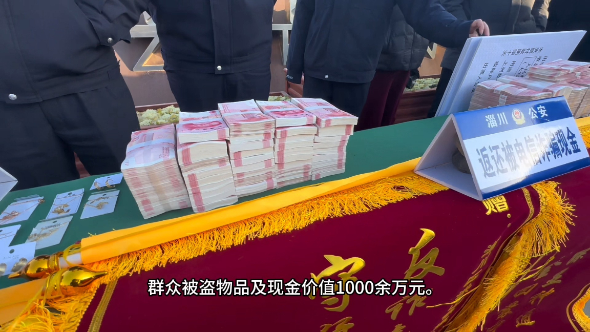 1月10日上午,淄博市公安局淄川分局在淄川体育公园南门广场举行“四十载守护平安 110勇毅前行”主题警营开放日暨“冬季守护——提升打防质效 维护安全稳定”专项工作战果展示活动。活动现场,共退还群众被盗物品及现金价值1000余万元。部分群众在民警的引导下,依次领回了自己失而复得的财物,并将一面面锦旗郑重地交到办案民警手中。同时,还展示了各类新型反恐处突装备,开展了110报警服务、反电信网络诈骗、禁毒、反恐、假冒伪劣产品识别等业务知识宣传,进一步提高辖区群众自我防范和遵纪守法意识,筑牢平安防线。(大众新闻·鲁中晨报记者任灵芝 通讯员李胜男)