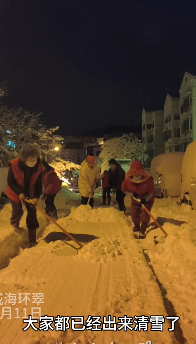 1月11日凌晨,环翠区街头全员出动清雪,保障道路通畅,为他们点赞!(大众新闻记者 郑莉 通讯员 夏清雨)