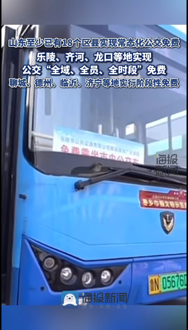 山东至少已有18个区县实现常态化公交免费,乐陵、齐河、龙口等地实现公交“全域、全员、全时段”免费
