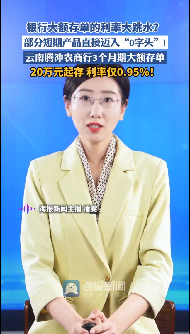 2026年开年以来,各大银行扎堆推出首期大额存单,截至1月7日,超30家银行发布了发行公告。让人没想到的是,以往比普通定期存款利率高的大额存单,如今短期产品利率大跳水。云南腾冲农商银行推出的三个月期大额存单,20万元起存,利率仅0.95%,跌破1%关口。