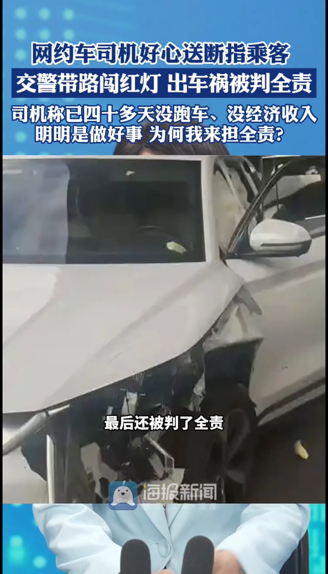 主播说|网约车司机好心送断指乘客 交警带路闯红灯 出车祸被判全责