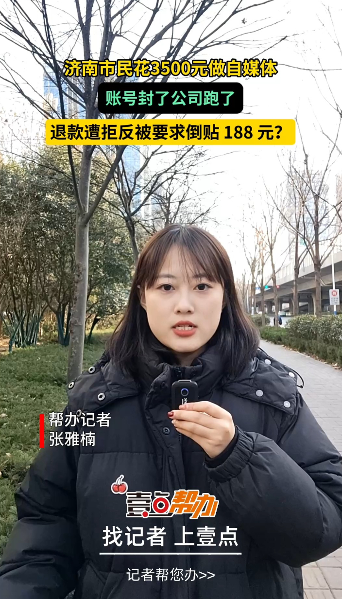 (齐鲁晚报·齐鲁壹点 记者 张雅楠)近日,一位济南壹粉于女士向齐鲁晚报·齐鲁壹点情报站(报料电话:0531-85193700;报料平台:“壹点帮办”微信小程序)反映,2025年10月,她花了3500元找到阿宝文化传媒有限公司为其制作短视频,然而视频发布后不仅账号遭到了封禁,于女士想要退款不成反被要求倒贴188元?如今该公司处于失联状态,具体情况如何,我们来现场看看。