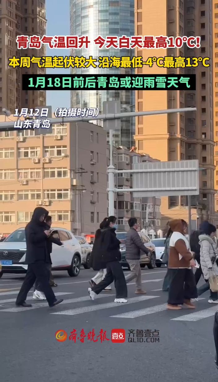 果然视频丨三九天气温最高或达13℃!18日前后有雨雪齐鲁晚报·齐鲁壹点客户端 10:42原创1月12日,晴空相伴,青岛开启升温模式,各区市的最高气温会迅速上升到7℃到10℃。根据青岛市气象台发布的天气预报,本周青岛以晴间多云天气为主,18日前后有雨雪。气温起伏较大,最低气温沿海地区-4℃到5℃,内陆地区-7℃到-1℃,最高气温沿海地区4℃到13℃,内陆地区3℃到11℃。南北风交替,风力3到4级为主。 (齐鲁晚报·齐鲁壹点 高雅洁)