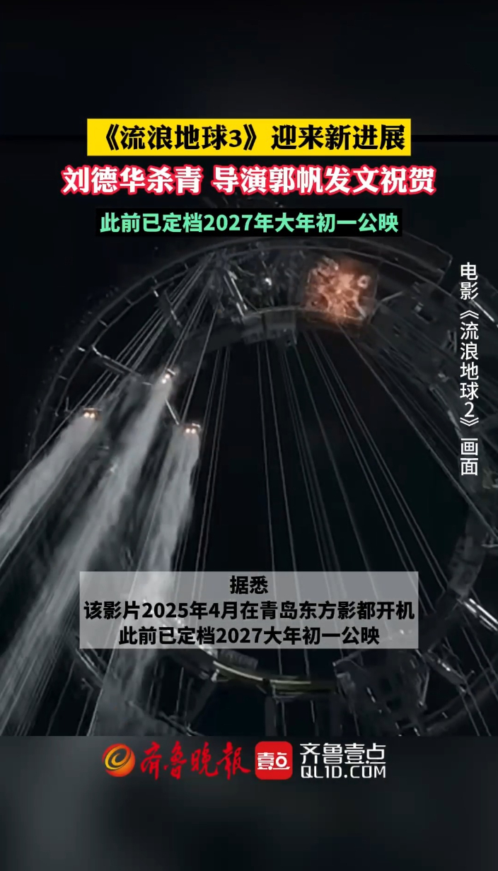果然视频丨《流浪地球3》刘德华杀青!导演郭帆发文祝贺齐鲁晚报·齐鲁壹点客户端 14:01原创近日,《流浪地球3》传来新消息,刘德华杀青,导演郭帆发文祝贺。据悉,该影片2025年4月在青岛东方影都开机,此前已定档2027大年初一公映。 (齐鲁晚报·齐鲁壹点 徐润杰)