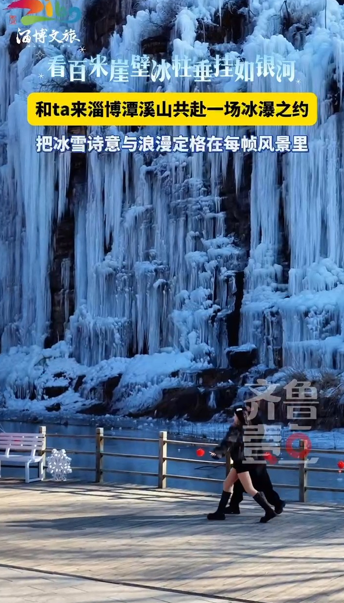 看百米崖壁冰柱垂挂如银河,和ta来淄博潭溪山共赴一场冰瀑之约,把冰雪诗意与浪漫定格在每帧风景里!