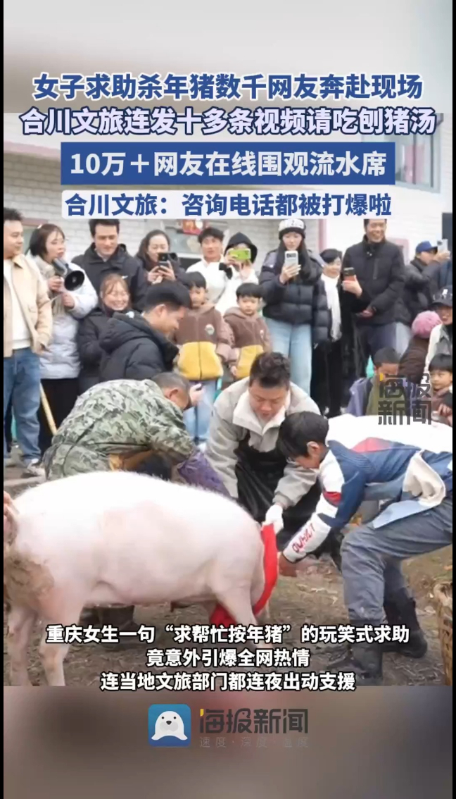 女子求助杀年猪数千网友奔赴现场,合川文旅连发十多条视频请吃刨猪汤