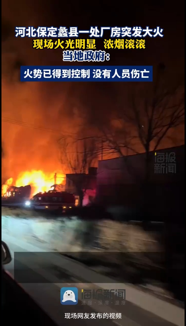 河北保定蠡县一处厂房突发大火 当地政府:火势得到控制 无人员伤亡