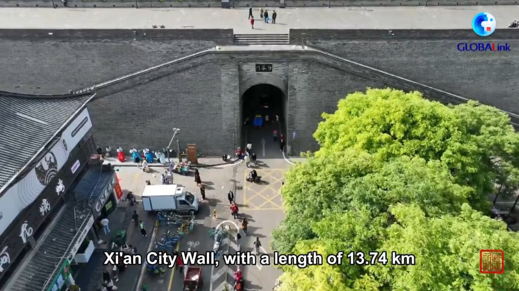 Xi'an City Wall, initially erected some 1,400 years ago -- in 582 A.D., during the Sui Dynasty, now stretches 13.74 kilometers encircling the city of Xi'an in northwest China's Shaanxi Province.