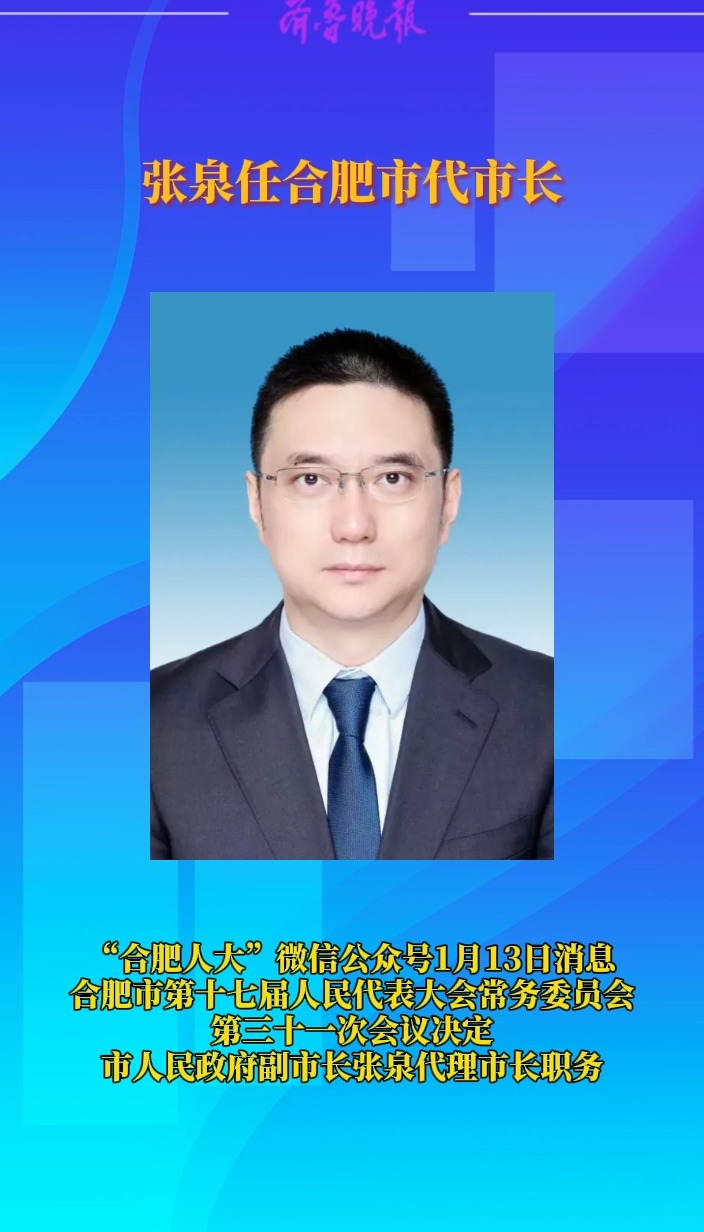 观政视频|张泉任合肥市代市长 昨天14:26 原创齐鲁晚报·齐鲁壹点客户端 微信扫码扫码下载客户端“合肥人大”微信公众号1月13日消息,合肥市第十七届人民代表大会常务委员会第三十一次会议决定:市人民政府副市长张泉代理市长职务。
