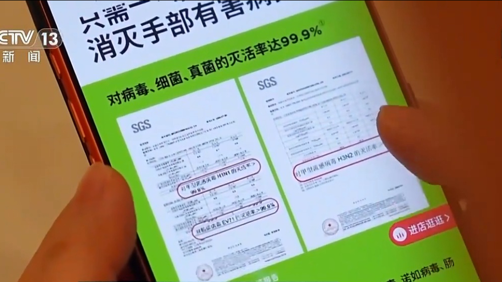 真相来了,直播间售卖的零酒精防甲流湿巾一擦就能灭病毒?湿巾难以对空气中的病毒传播产生实质影响。 (央视新闻)