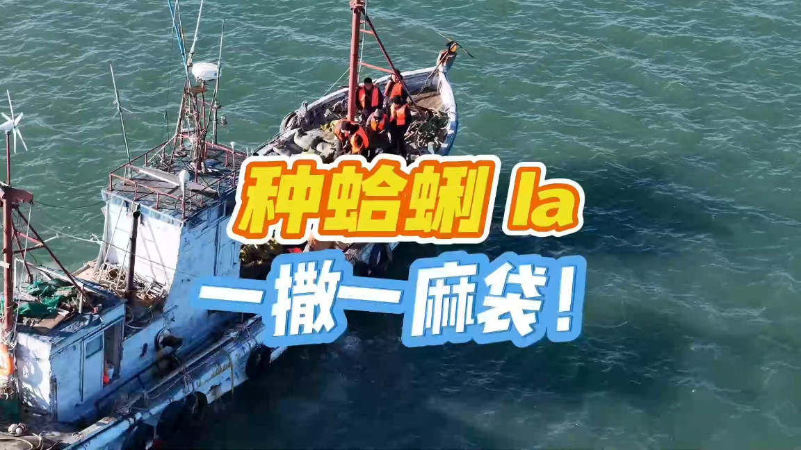 种蛤蜊啦,一撒一麻袋!#蛤蜊撒苗#海上播种(即墨融媒出品)