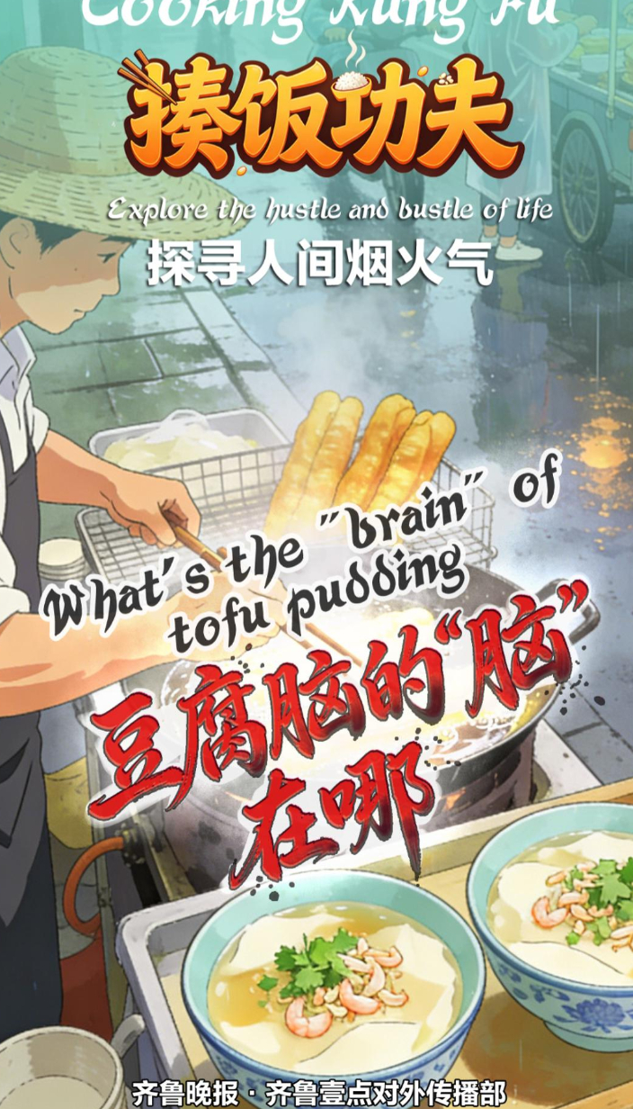 “揍”饭功夫Cooking Kungfu|豆腐脑的“脑”在哪齐鲁晚报·齐鲁壹点客户端 昨天15:59原创山东的清晨,小吃摊的腾腾香气总能瞬间抓住味蕾,一碗豆腐脑的“脑”是怎么“揍”出来的?一起寻味。 The video focuses on the secrets behind this popular delicacy. 齐鲁晚报点·齐鲁壹点记者 王娟 董从哲 实习生 田宝亮 栾皓竣
