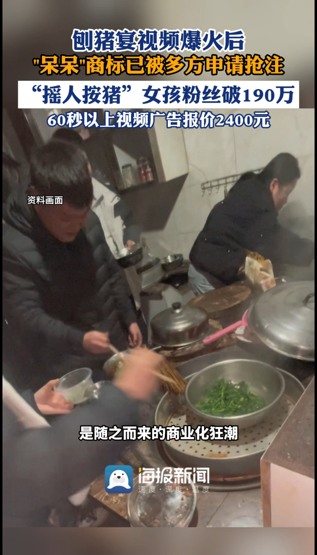 主播说 |刨猪宴视频爆火后 “呆呆”商标已被多方申请抢注 “摇人按猪”女孩粉丝破190万 60秒以上视频广告报价2400元