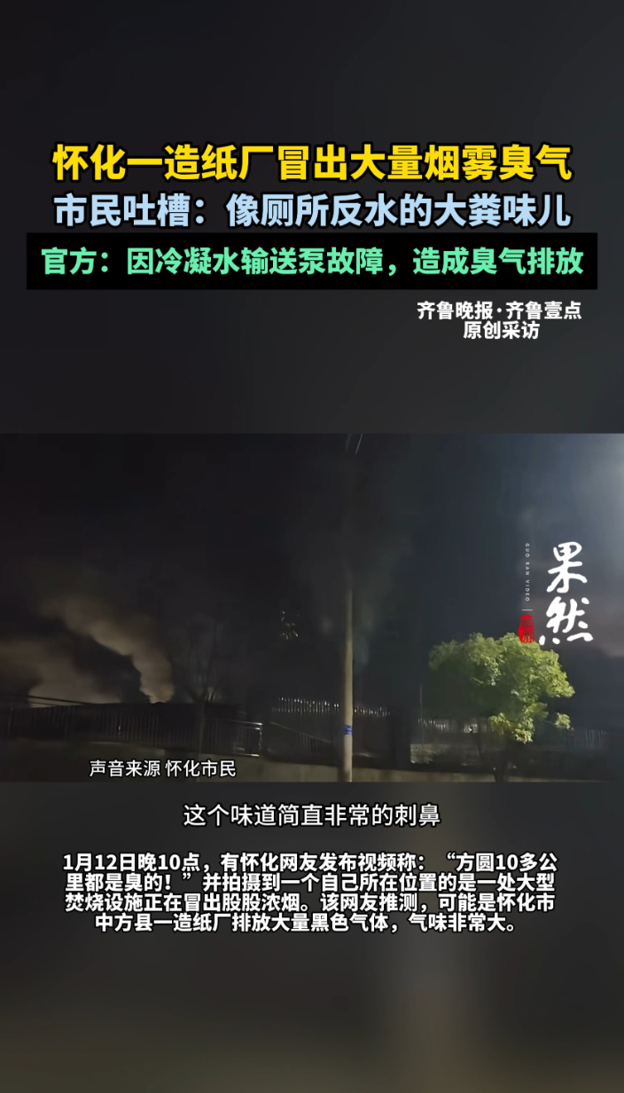 果然视频|怀化一造纸厂冒出大量烟雾臭气,市民吐槽“像大粪味”!官方通报