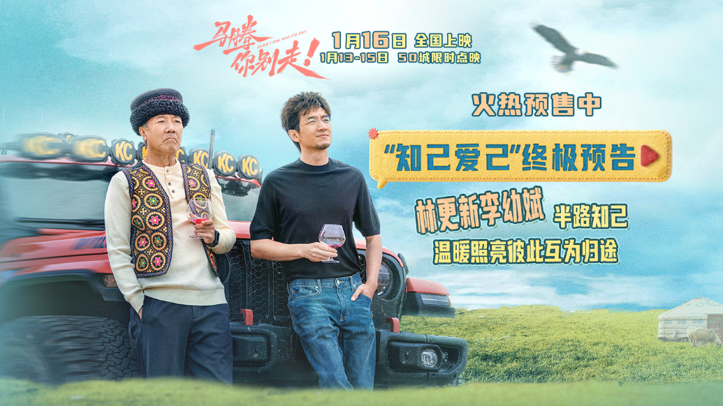 《马腾你别走》终极预告 林更新李幼斌半路知己互为归途大众报业·齐鲁壹点 12:26电影《马腾你别走》今日发布“知己爱己”版终极预告。预告中,马腾(林更新 饰)与老林(李幼斌 饰)从“我要是你”的人生假设到“我陪着你”的双向看见,在彼此相伴同行的治愈旅程中,完成对“得遇一知己,同心互渡安”的真挚诉说。