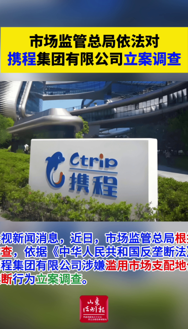 市场监管总局依法对携程集团有限公司立案调查 20:12 大众新闻·山东法制报 微信扫码扫码下载客户端据央视新闻消息,近日,市场监管总局根据前期核查,依据《中华人民共和国反垄断法》,对携程集团有限公司涉嫌滥用市场支配地位实施垄断行为立案调查。