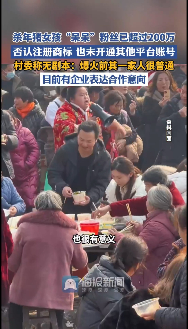 据村干部介绍,“呆呆”本人之前在主城区里做点小生意,在爆火前她和父母都很普通,她本人还有一个妹妹,谁都没有想到刨猪宴会如此爆火,目前也有企业联系他们表达合作意向