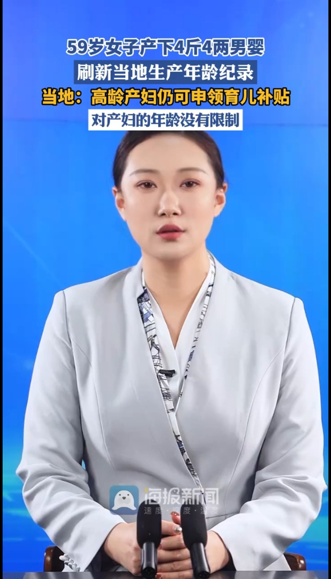 主播说丨59岁女子产下4斤4两男婴 刷新当地生产年龄纪录,当地:可申领育儿补贴