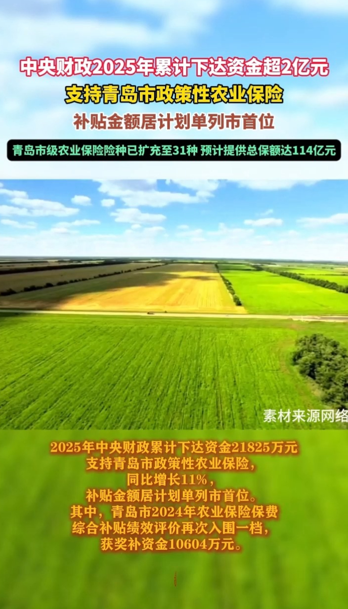 果然视频丨中央财政“补贴”超2亿元支持青岛市政策性农业保险齐鲁晚报·齐鲁壹点客户端 14:59原创2025年中央财政累计下达资金21825万元支持青岛市政策性农业保险,同比增长11%,补贴金额居计划单列市首位。其中,青岛市2024年农业保险保费综合补贴绩效评价再次入围一档,获奖补资金10604万元。(齐鲁晚报·齐鲁壹点记者 尚青龙)