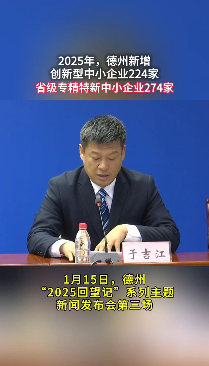 果然视频 | 2025年,德州市新增创新型中小企业224家齐鲁晚报·齐鲁壹点客户端 16:27原创1月15日上午,德州市召开德州“2025回望记”系列主题新闻发布会第三场,介绍2025年德州工业经济发展成效,并回答记者提问。2025年,全市新增创新型中小企业224家;省级专精特新中小企业274家。新增国家专精特新“小巨人”企业16家,同比增长220%,列全省第3位。(齐鲁晚报·齐鲁壹点 李梦晴)
