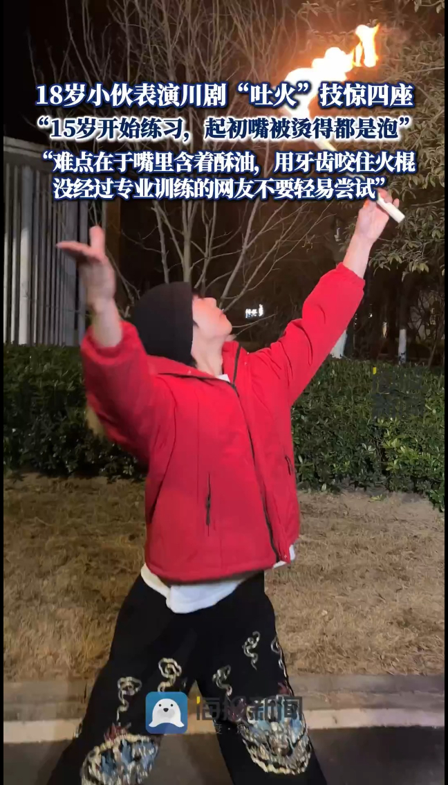 18岁小伙传承非遗,表演川剧“吐火”技惊四座:“15岁开始练习,起初嘴被烫得都是泡”