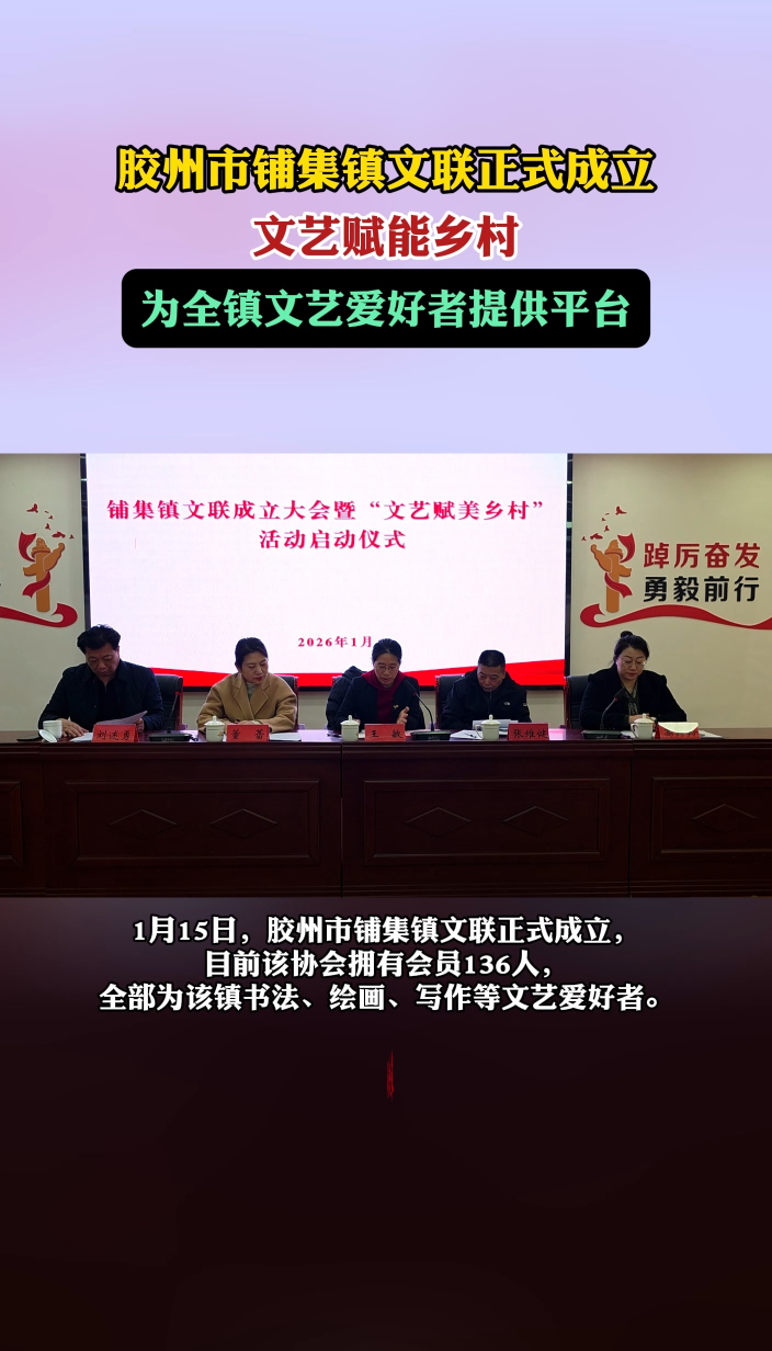 果然视频丨文艺赋能乡村,胶州市铺集镇文联正式成立齐鲁晚报·齐鲁壹点客户端 昨天17:56原创1月15日,胶州市铺集镇文联正式成立。目前,该协会拥有会员136人,全部为该镇书法、绘画、写作等文艺爱好者。成立仪式过后,胶州市首家村(社区)级文联——铺上四社区文联随即成立。 (齐鲁晚报•齐鲁壹点 刘震)