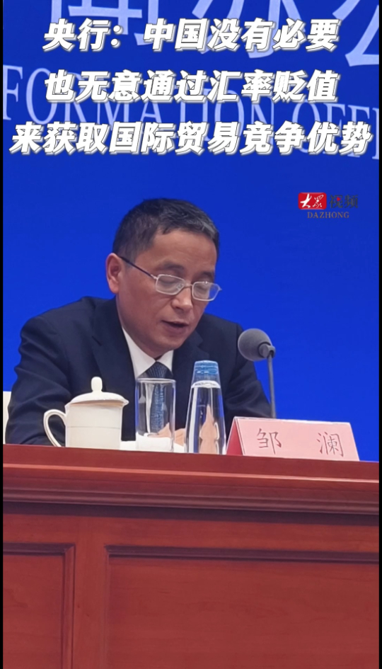 央行:中国没有必要也无意通过汇率贬值来获取国际贸易竞争优势大众新闻 19:23原创中国人民银行新闻发言人、副行长邹澜:中国汇率政策是清晰的、一贯的,坚持市场在汇率形成中发挥决定性作用,保持人民币汇率在合理均衡水平上的基本稳定。中国是负责任的大国,没有必要、也无意通过汇率贬值来获取国际贸易竞争优势。(大众新闻记者 张焕辰 董婉婉 北京报道)