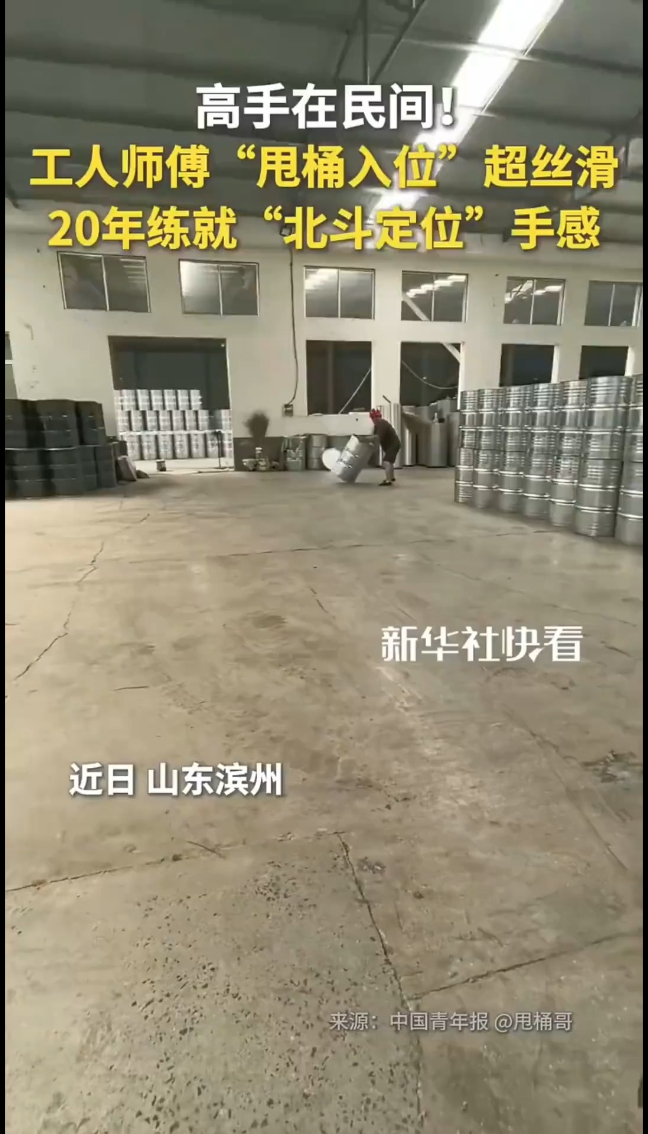 近日,山东滨州,工人师傅“甩桶入位”超丝滑,20年练就“北斗定位”手感。网友:师傅扔出去的桶不仅不倒还会拐弯。