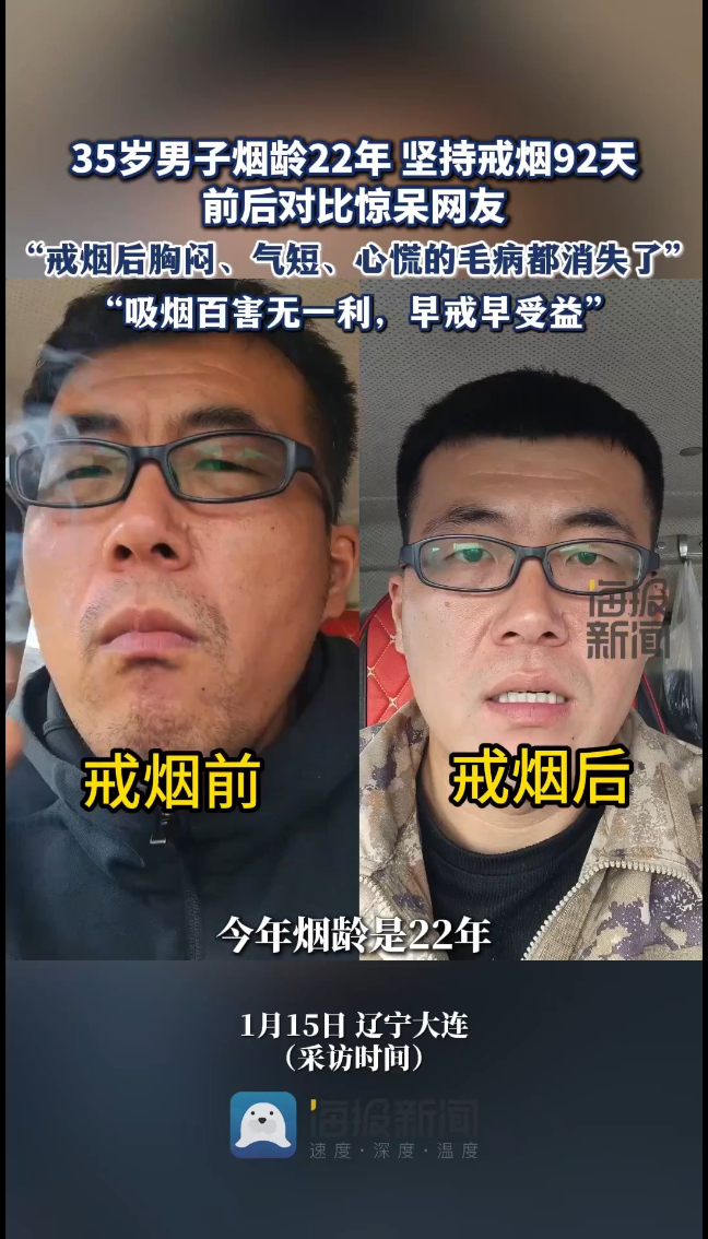 男子烟龄22年坚持戒烟92天,前后对比惊呆网友:吸烟百害无一利,早戒早受益