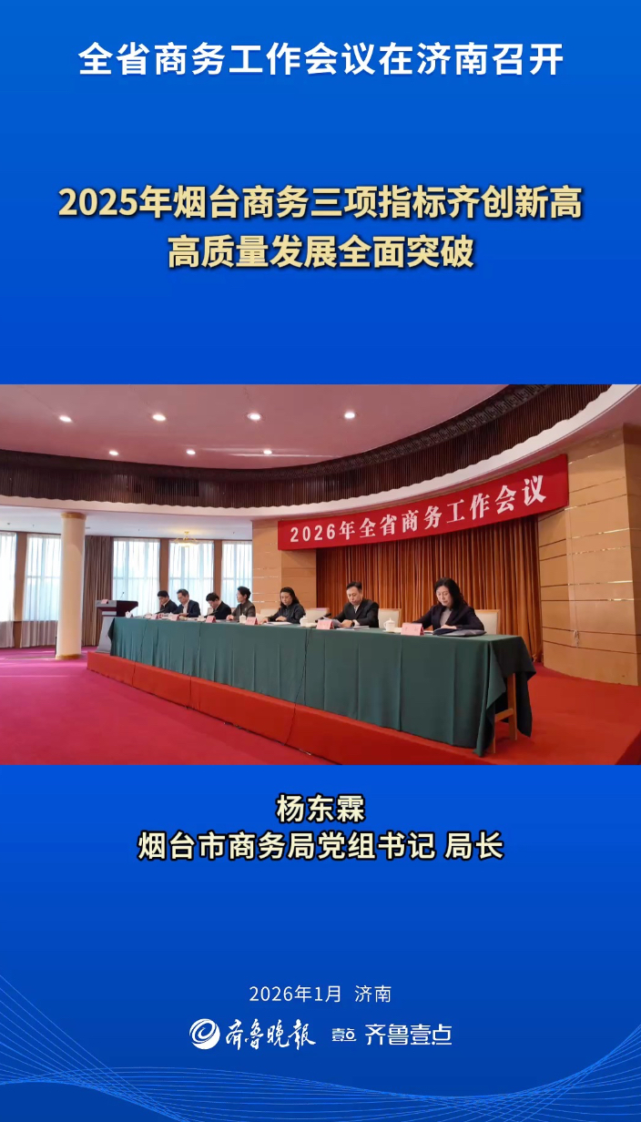 商务发布|2025年烟台商务三项指标齐创新高大众报业·齐鲁壹点 10:401月13日,山东省商务工作会议在济南召开,会议总结了2025年商务工作并部署2026年重点任务。烟台市商务局党组书记、局长杨东霖表示,2025年烟台商务三项指标齐创新高,高质量发展全面突破。