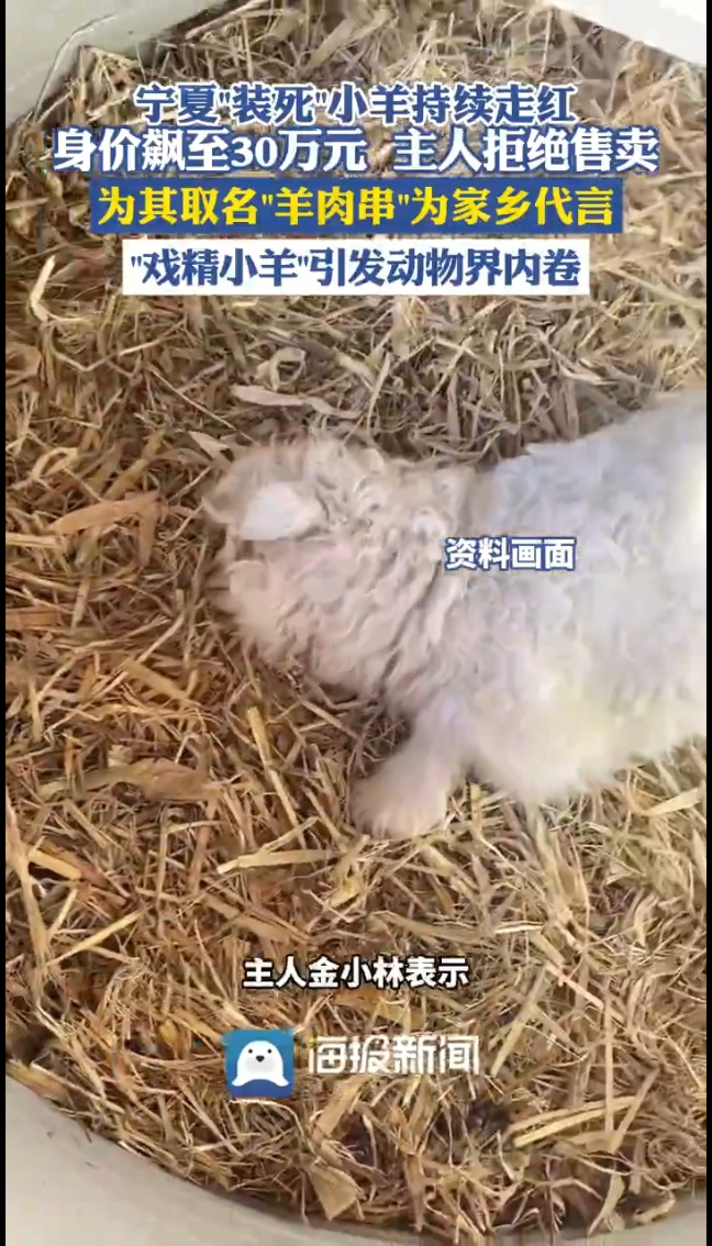 主播说 | 宁夏“装死”小羊持续走红 身价飙至30万元 主人拒绝售卖 为其取名“羊肉串”为家乡代言 “戏精小羊”引发动物界内卷