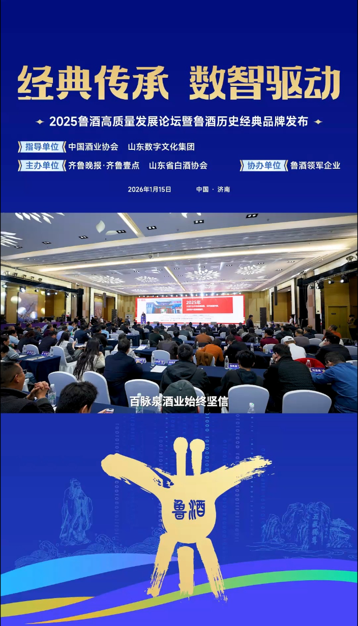 1月15日下午,山东百脉泉酒业股份有限公司董事长李成新在2025鲁酒高质量发展论坛上的精彩发言瞬间。
