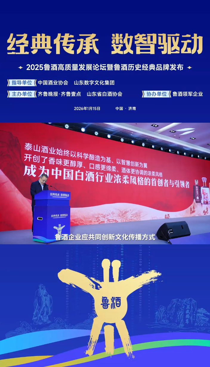 2026年1月15日下午,泰山酒业集团股份有限公司董事长张铭新在2025鲁酒高质量发展论坛上的精彩发言瞬间。