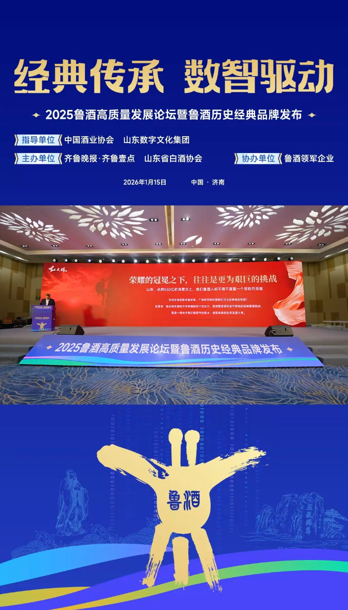 2026年1月15日下午,山东红太阳酒业集团有限公司总经理任志刚在2025鲁酒高质量发展论坛上的精彩发言瞬间。