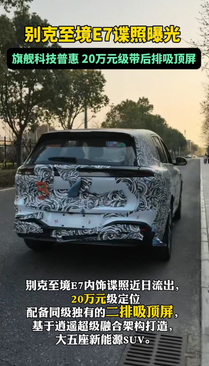 别克至境E7内饰谍照曝光,旗舰科技普惠20万元级带后排吸顶屏 20:06 大众报业·齐鲁壹点 微信扫码扫码下载客户端别克至境E7内饰谍照曝光,旗舰科技普惠 20万级带后排吸顶屏!#新能源SUV豪华舒适新标杆#别克至境E7