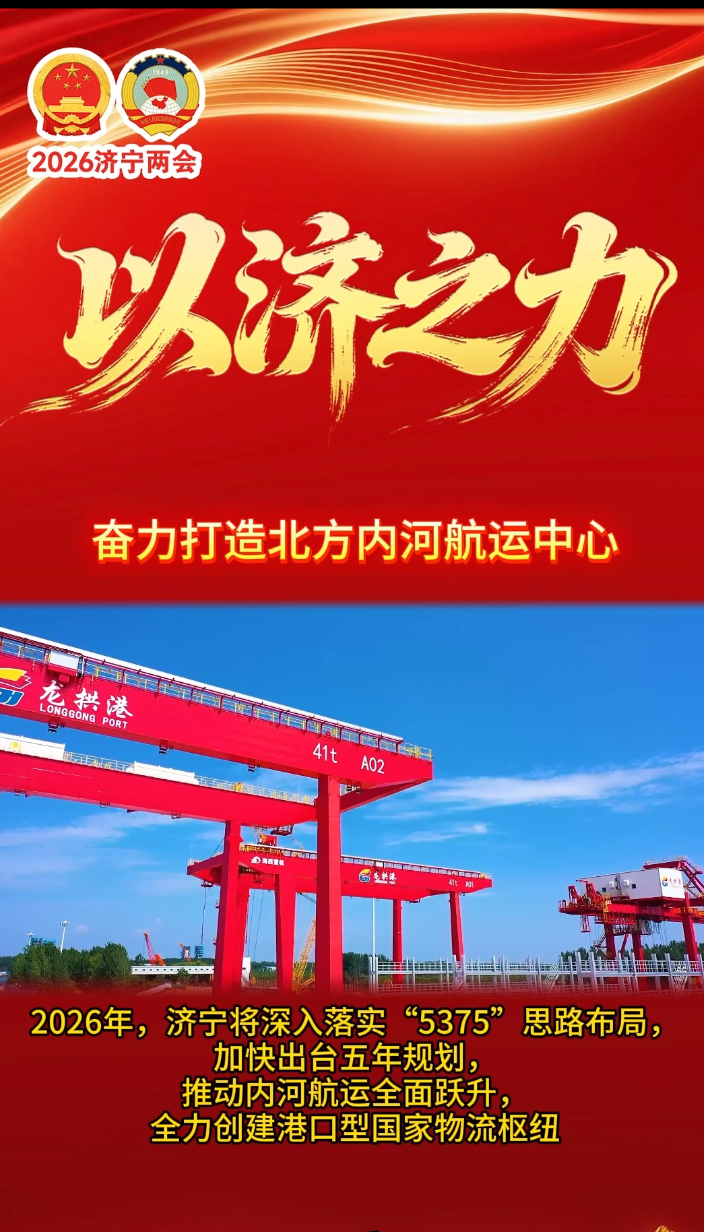 济宁市政府工作报告解读|奋力打造北方内河航运中心大众报业·齐鲁壹点 18:16济宁市政府工作报告解读|奋力打造北方内河航运中心 深入落实“5375”思路布局,加快出台五年规划,推动内河航运全面跃升,全力创建港口型国家物流枢纽。
