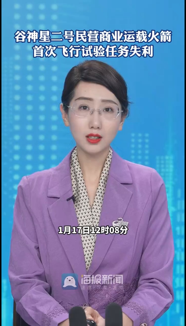 主播说丨谷神星二号民营商业运载火箭首次飞行试验任务失利 09:45 原创大众新闻·海报新闻 微信扫码扫码下载客户端1月17日12时08分,谷神星二号民营商业运载火箭在酒泉卫星发射中心点火升空,火箭飞行异常,首次飞行试验任务失利。具体原因正在进一步分析排查。(海报新闻综合新华社编辑 左晓明 潘雯 张坤)