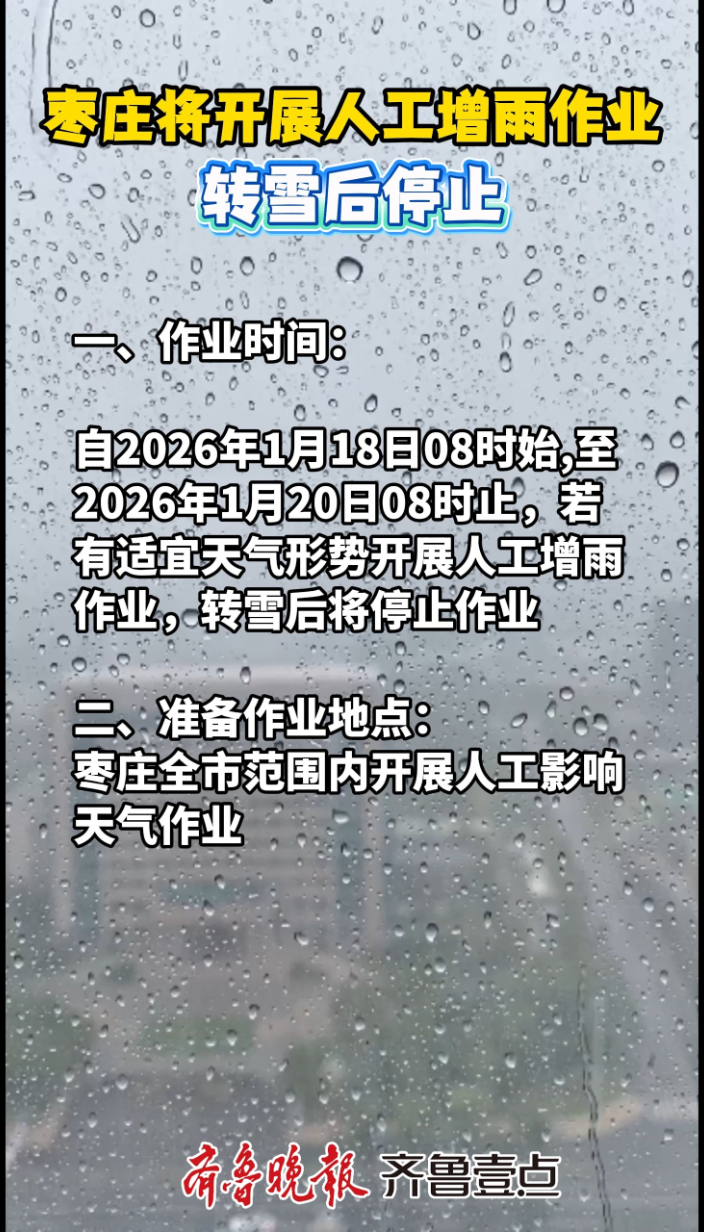 枣庄将开展人工增雨作业,转雪后停止